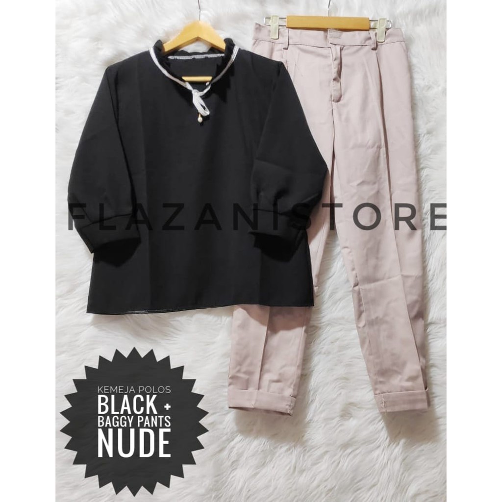 Setelan Monalisa Ori BLOUSE MUTIARA POLOS BLACK dan Celana . Sumber Gambar : shopee.co.id