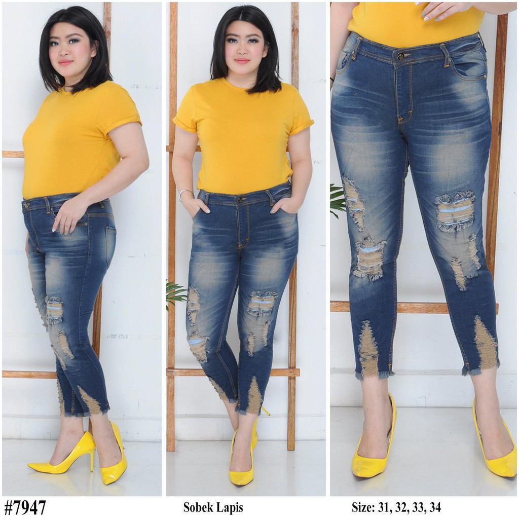 CELANA JEANS WANITA 7 9 MAXEN RIPPED BIGSIZE JUMBO . Sumber Gambar : shopee.co.id