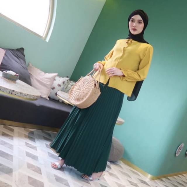Baju Yang Cocok Untuk Rok Plisket Warna Hijau Pintar Sumber : pintarmencocokan.blogspot.com